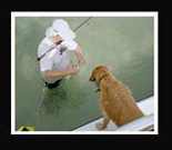 Annie has been specially trained to swim live bait to the wade fisherman in her