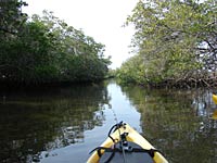 a kayak durring the extreme winter tidal flows on Tampa Bay. This is heaven on