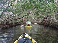 a kayak durring the extreme winter tidal flows on Tampa Bay. This is heaven on