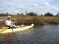 the acrobatic jumps of a 'Lady Fish' (the "poor man's tarpon") caught from a kayak